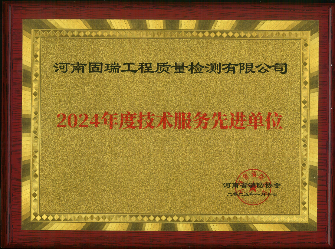 • 熱烈祝賀河南固瑞工程質(zhì)量檢測有限公司榮獲河南省消防協(xié)會2024年度技術(shù)服務(wù)先進(jìn)單位!!!